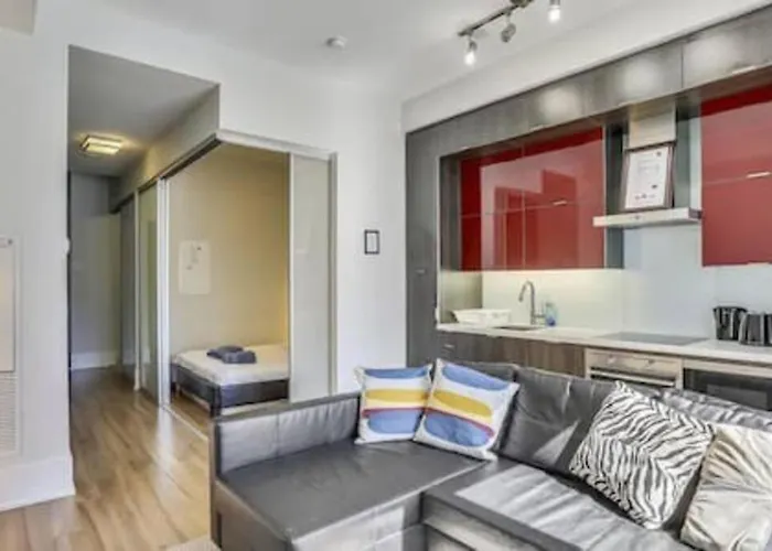 Este apartamento se encuentra en el barrio Centro de Toronto, bastante cerca de la estación de metro St Andrew. Desde el apartamento, el Salón de la Fama del Hockey está a tan solo 1 km.